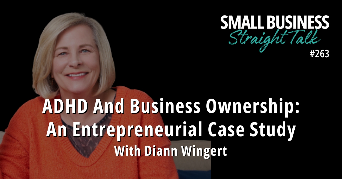 In this episode of Small Business Straight Talk, I sit down with Business Strategist, Coach, and Mentor, Diann Wingert, for an in depth conversation about the intersection of ADHD and business ownership, and how she manages it daily