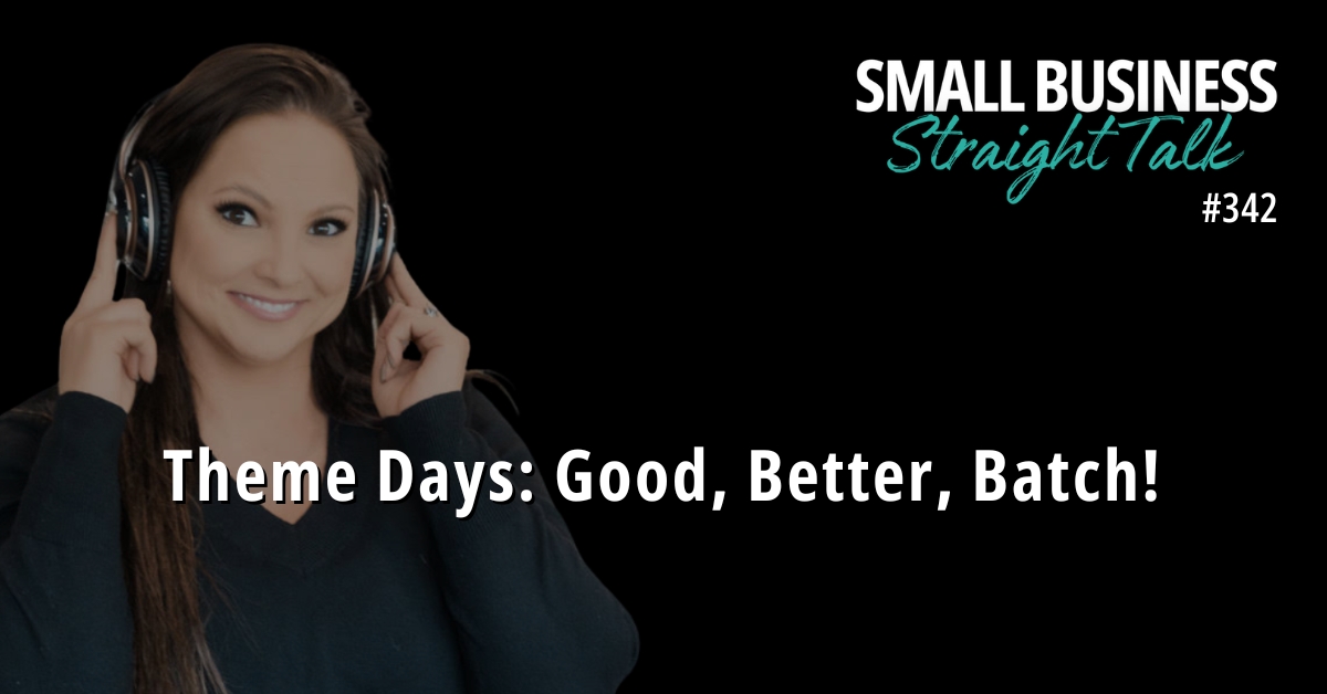 In this episode of the Small Business Straight Talk Podcast, I dive into the topic of theme days and how to implement them so you can take advantage of the awesome benefits gained from taking your time blocking from good to better to batch!